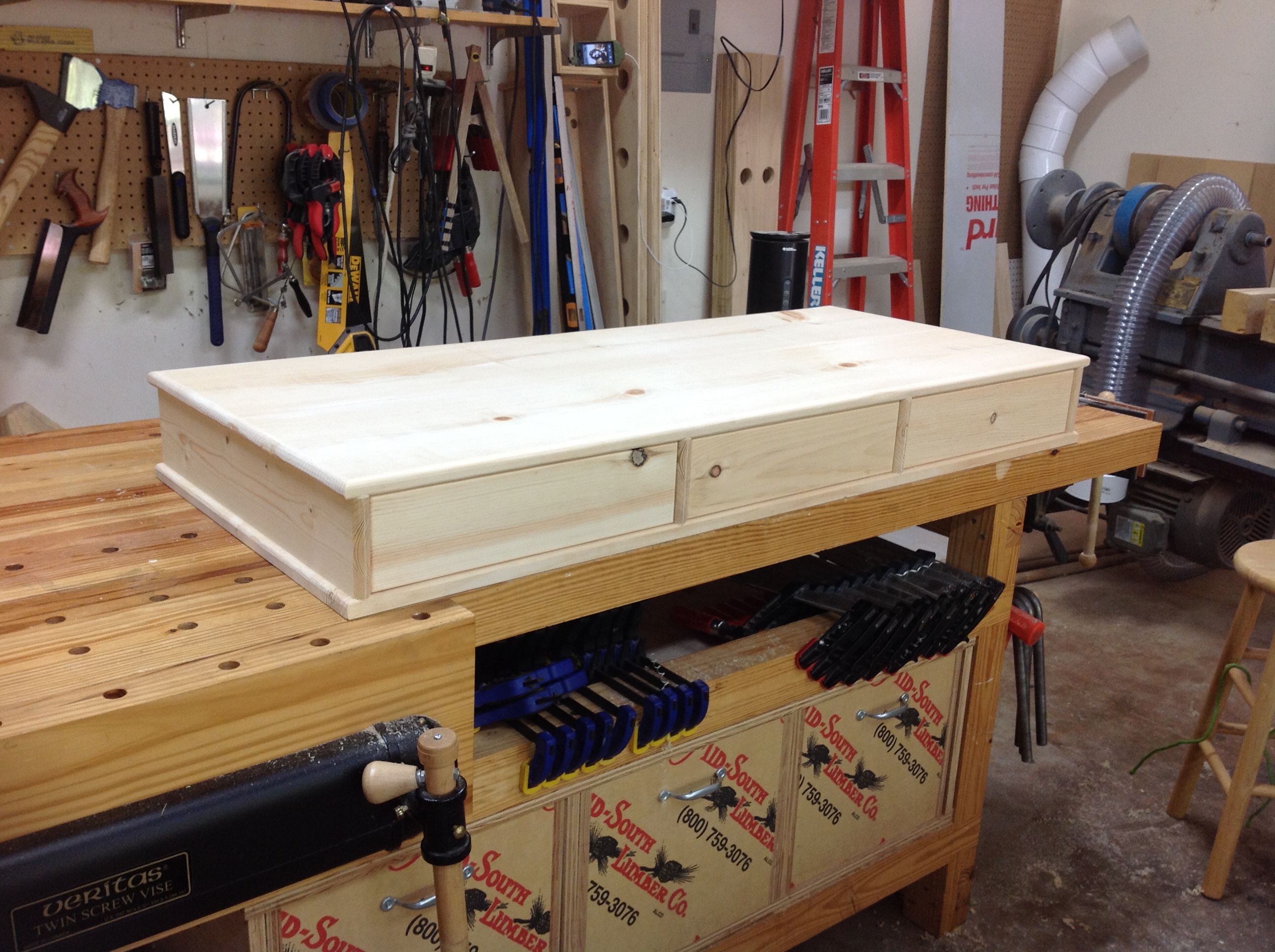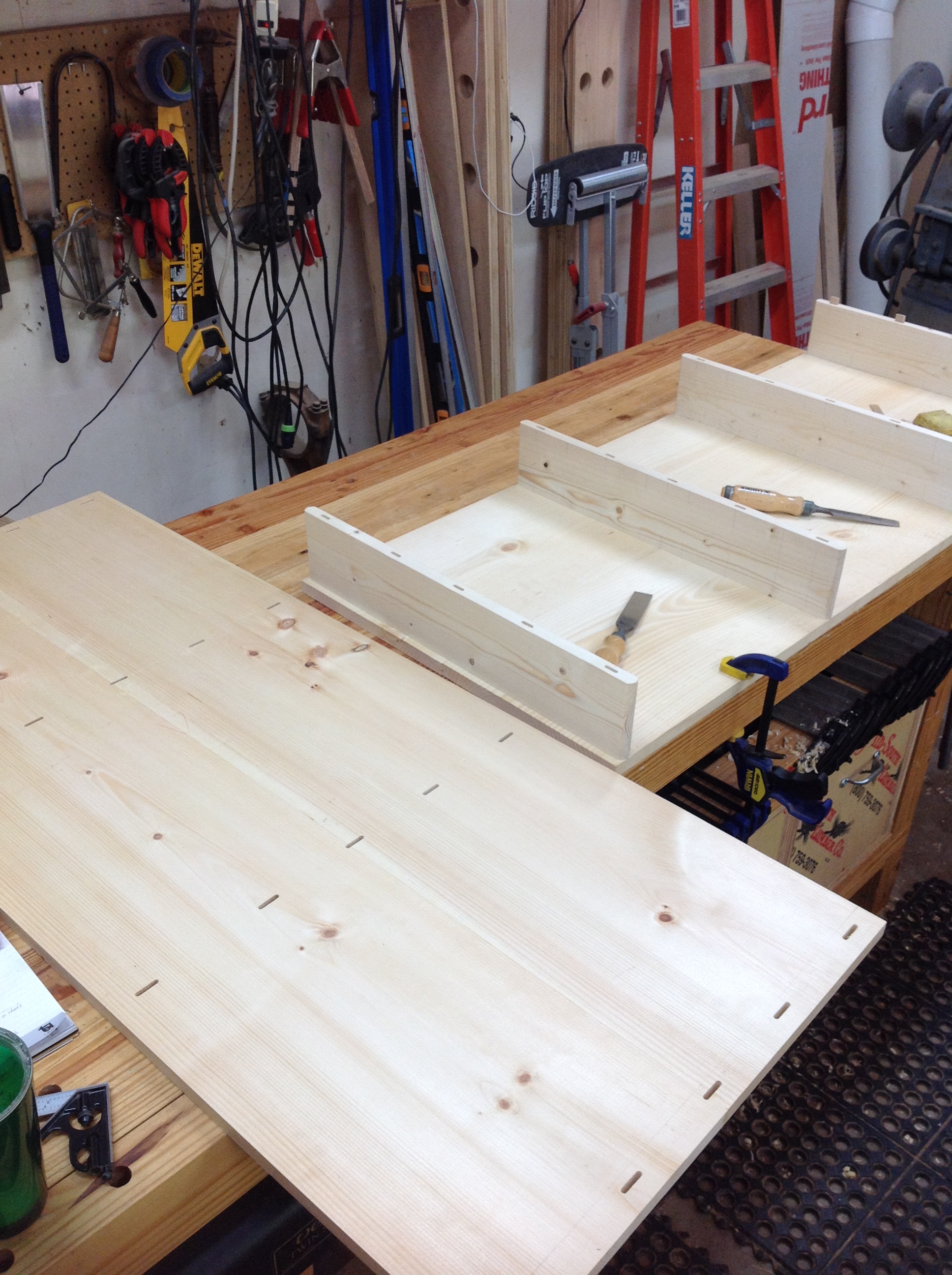 The drawers each have 8 mortise and tenons with 1/2″ thick white pine bottoms making a very sturdy drawer. The drawers open from either side of the cart for better functionality.